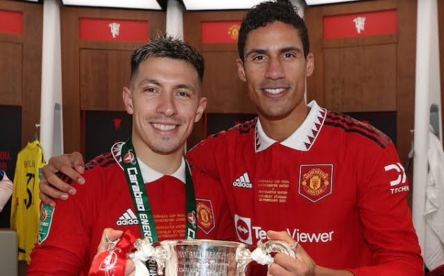 Лисандро Мартинес и Рафаэль Варан улыбаются после победы в Кубке Карабао. Фото: Getty Images/Matthew Peters