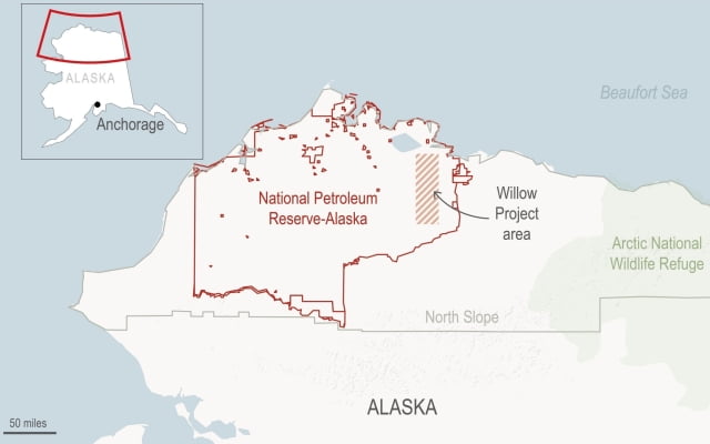 По оценкам экологических групп, проект Willow добавит в атмосферу более 250 миллионов метрических тонн выбросов углерода в течение следующих 30 лет, что эквивалентно ежегодным выбросам 66 угольных электростанций.
