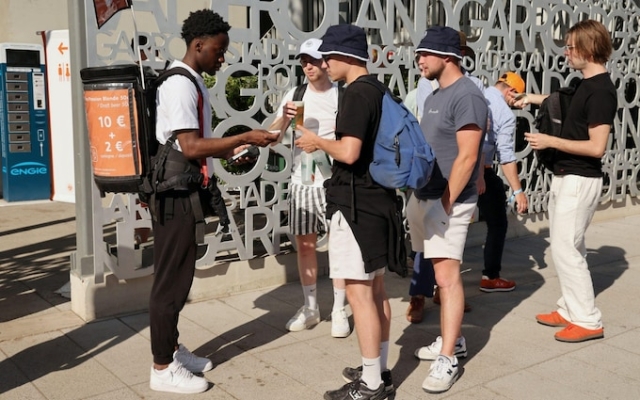 Tennis fans line up to buy beer from a Roland Garros tournament supplier. Photo: Alamy Live/Maya Vidon-White