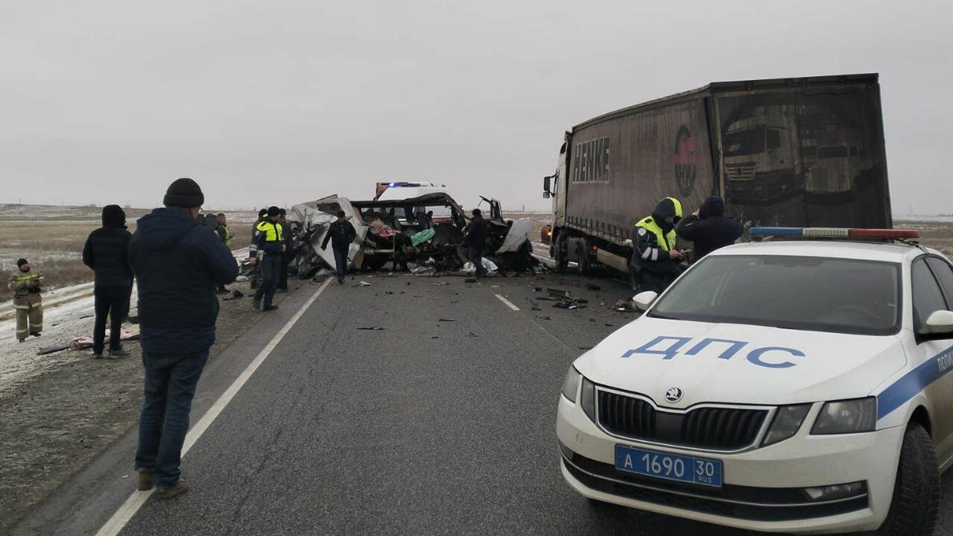 ДТП произошло в пятницу в Енотаевском районе. По предварительным данным, Ford Transit врезался в грузовик Volvo.