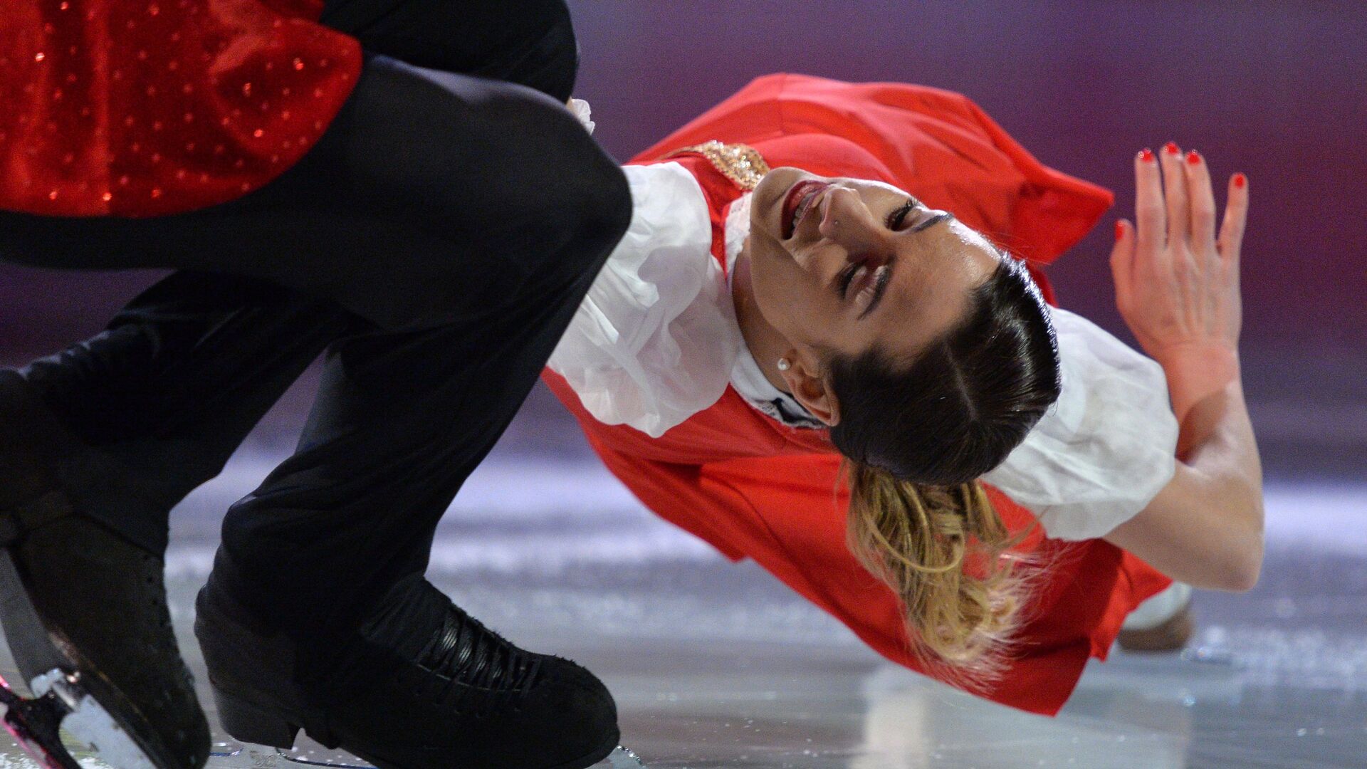 Погорилая предстала в показательном номере как победительница Евровидения Кончита Вурст. Сначала она вышла на лед в мужском парике, но затем костюм трансформировался, парик полетел на лед, и Анна завершила номер в золотом платье.