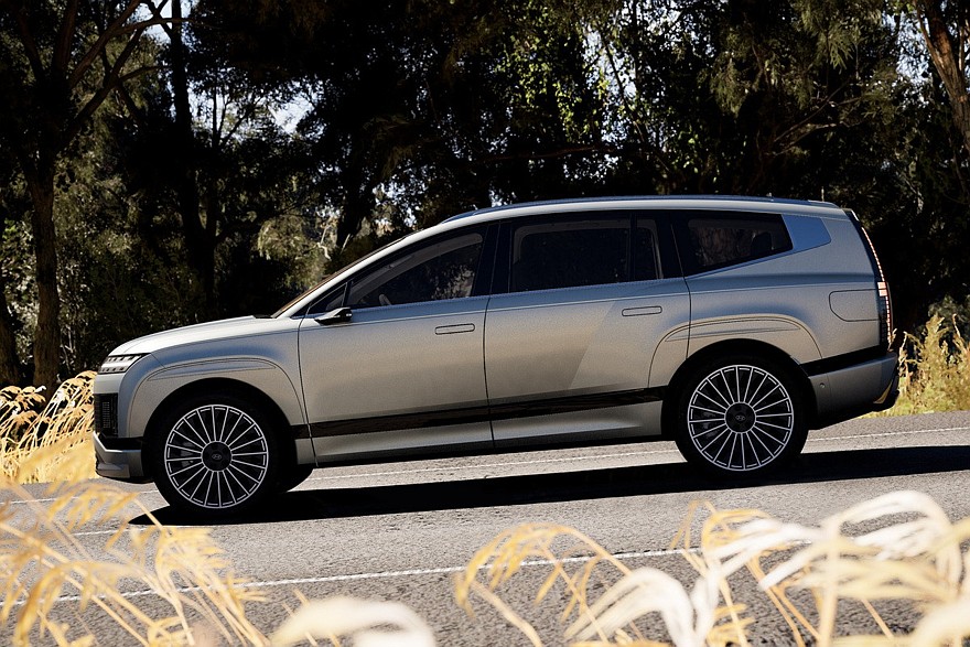 <стр>Из внешних особенностей стоит отметить ставшую привычной для моделей марки пиксельную оптику и выдвижные дверные ручки, над колесными арками — вставки в цвет кузова. За дополнительную плату вместо традиционных наружных зеркал можно заказать камеры. На родине Hyundai Ioniq 9 оснащается 19- или 21-дюймовыми колесами.