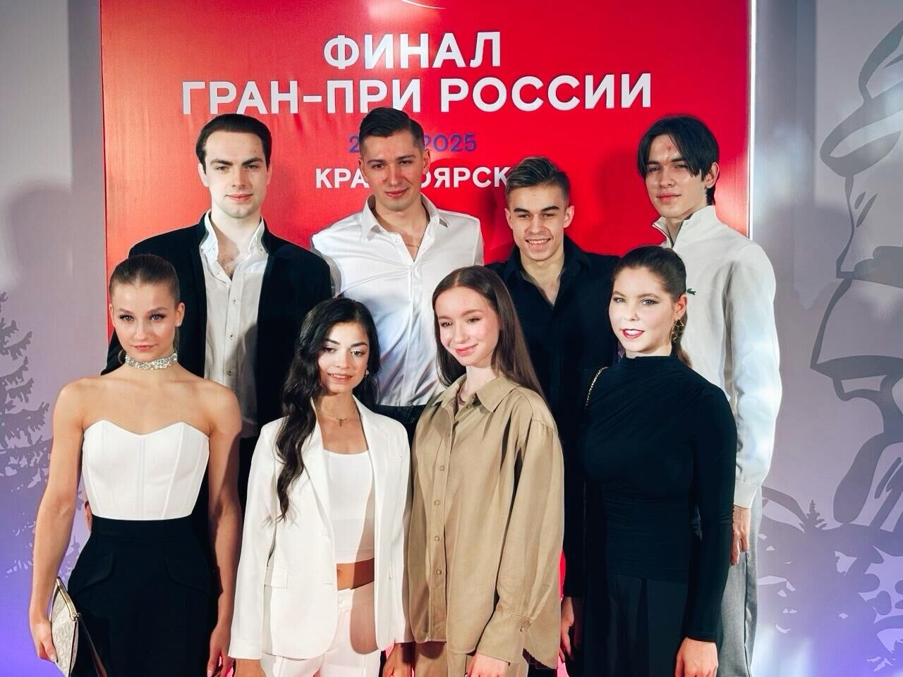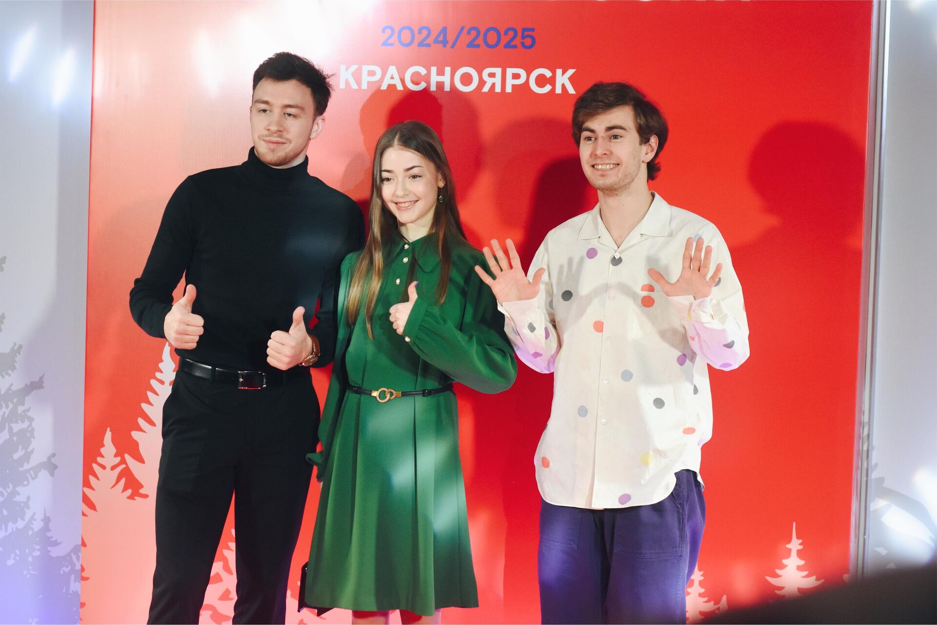 Наконец, также по традиции фигуристов напутствовали боссы федерации — Антон Сихарулидзе, двумя днями ранее на конференции ФФККР избавившийся от приставки «и.о.» к должности президента, а также генеральный директор организации Александр Коган. К ним примкнул министр спорта Красноярского края Денис Петровский, в своей речи признавшийся, что жеребьевку он любит как раз за возможность полюбоваться на спортсменов не в стандартной тренировочной форме. Тему подхватил Коган, в шутку предложивший вручать денежный приз за самый красивый наряд.