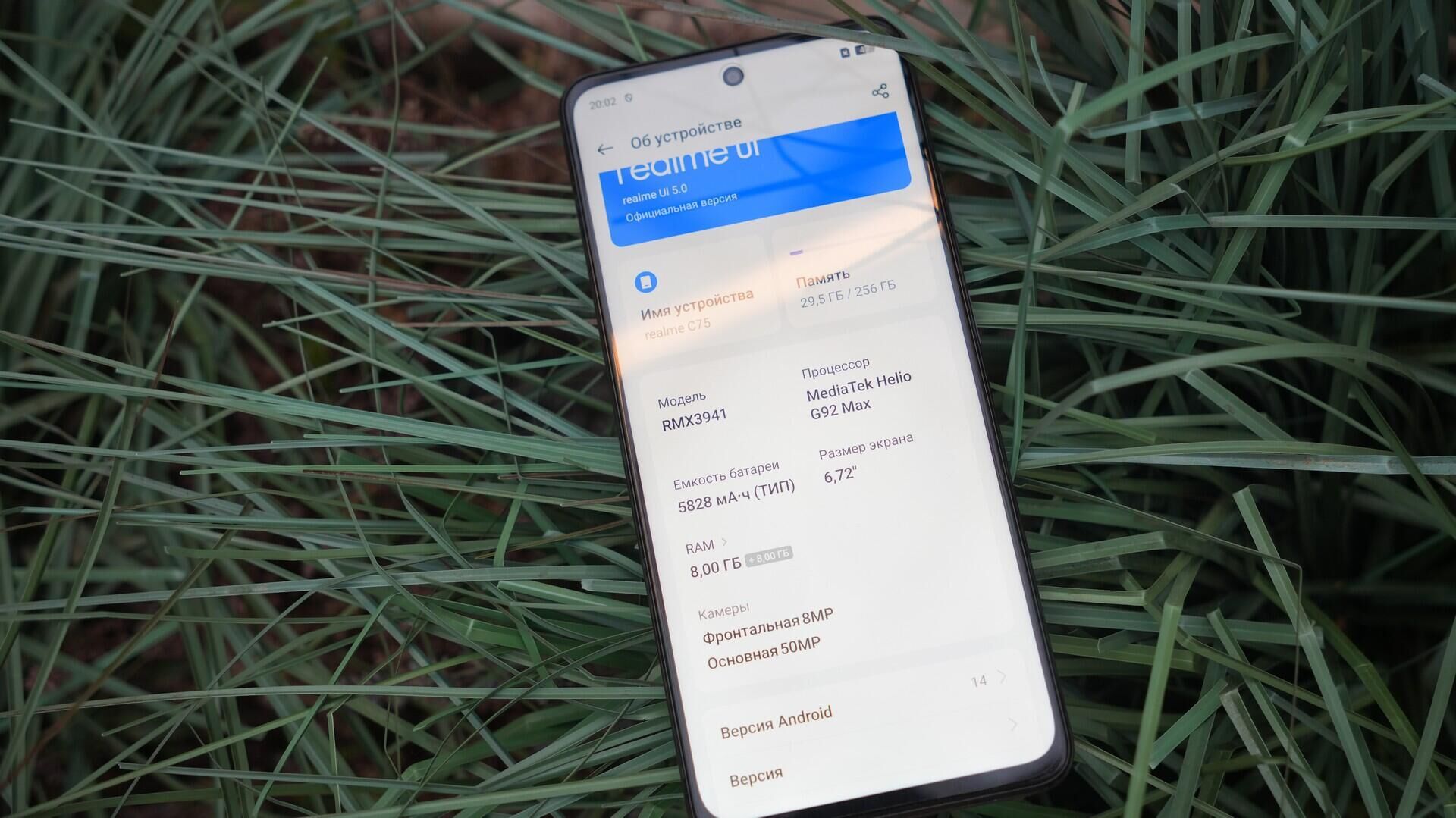 В качестве чипсета realme C75 использует MediaTek Helio G92 Max («МедиаТекХелио Джи92 Мкс»), новую платформу, которая была представлена в конце 2024 года. Это процессор из линейки хорошо известных чипов Helio G9x («ХелиоДжи9икс»). Тут без сюрпризов — восемь ядер, максимальная рабочая частота 2,0 гигагерца, техпроцесс 12 нм и видеоускоритель Mali-G52 MC2 («Мали-Джи52 МЦ2»).