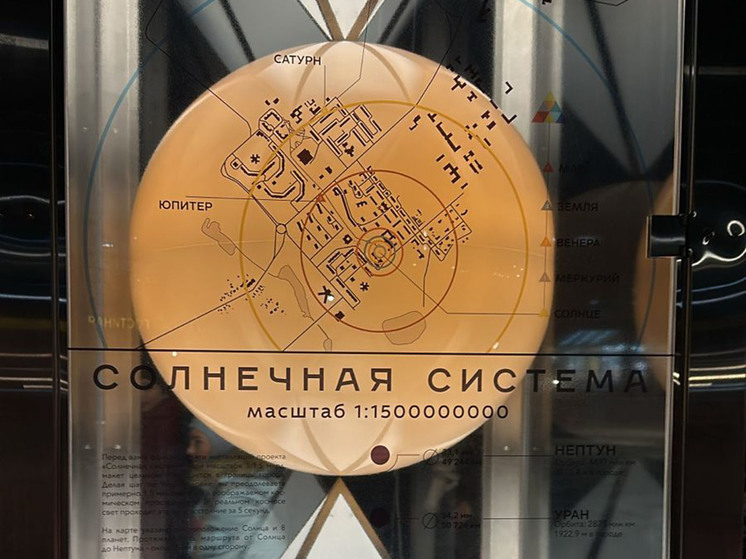 93-сантиметровую модель Солнца разместили на площади перед 82-й школой, неподалеку – еще четыре крошечных модели планет земной группы: Меркурия, Венеры, Земли и Марса. Они отстоят от Солнца на 30-100 метров. Сложно представить, что между Землей и светилом 150 миллионов километров. Но это – в воображаемом космическом пространстве, а тут километры и временной интервал сужаются до нескольких шагов.