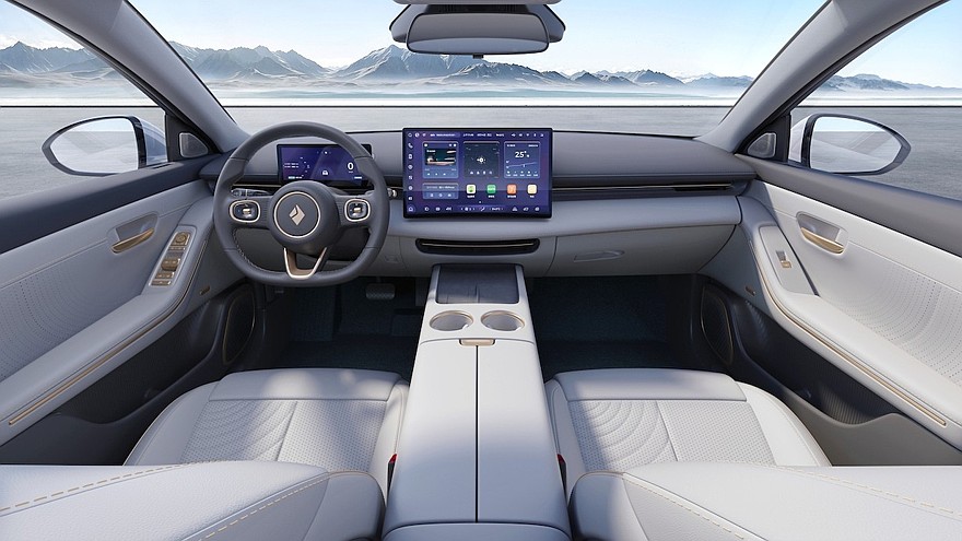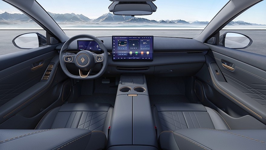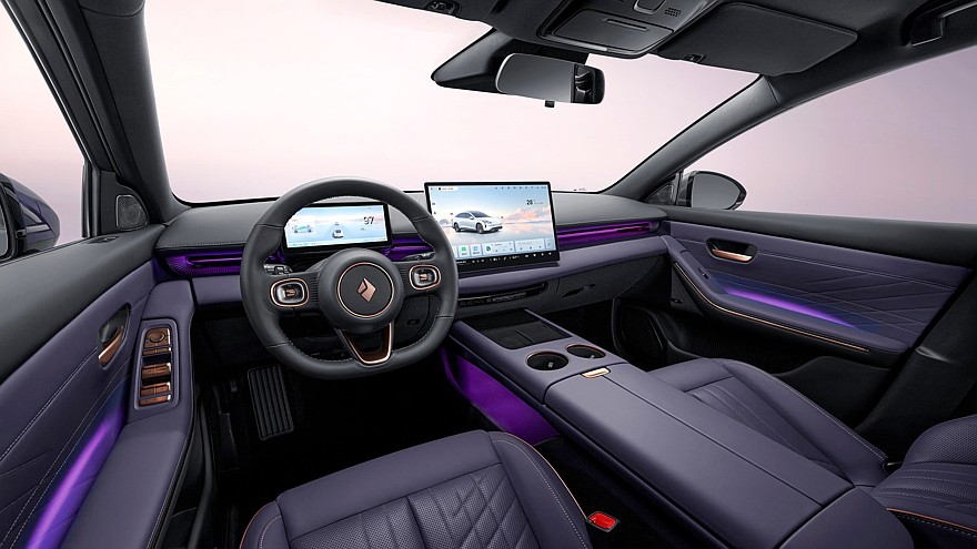 Сегодня рассекречен интерьер Baojun Xiangjing, он совершенно типовой для современных китайских легковушек: лаконичная передняя панель с двумя экранами и без физических кнопок, двухэтажный центральный тоннель с полочкой беспроводной зарядки для смартфонов на верхнем этаже, медные вставки на руле и в дверных картах, аккуратные материалы отделки и уютная светодиодная подсветка.