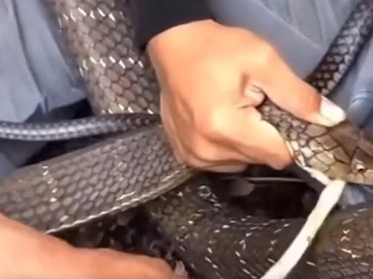 Стоит отметить, что королевская кобра — одна из самых ядовитых змей в мире. После укуса без противоядия человек может умереть за 15 минут.