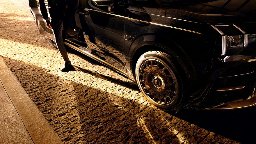 В салоне покупатель также найдёт вставки золотого цвета, а на пол уложены ковры из шерсти южноамериканской альпаки. Оснащение, разумеется, самое богатое: два задних VIP-кресла имеют огромное количество регулировок, встроенные массажёры и динамики аудиосистемы, при желании можно разложить кресло в кровать и вздремнуть в дороге. К перегородке между водительской и пассажирской частями салона пристыкован многофункциональный шкаф с 43-дюймовым телевизором, минибаром, раскладными столиками и вазочками для цветов.