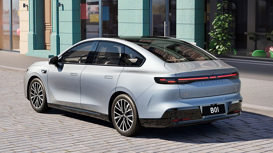 Всего две недели назад Leapmotor вывела на китайский рынок компактный электрический кроссовер B10, построенный на новейшей модульной платформе Leap 3.5, и вот уже готова очередная новинка — седан B01, который, по сути, является производной от этого кроссовера. При той же колёсной базе (2735 мм), седан чуть ниже и заметно длиннее кроссовера. Габаритная длина седана — 4770 мм, ширина — 1880 мм, высота — 1490 мм. Передняя подвеска — типа McPherson, задняя — независимая, многорычажная. Штатные колёса — 18-дюймовые.