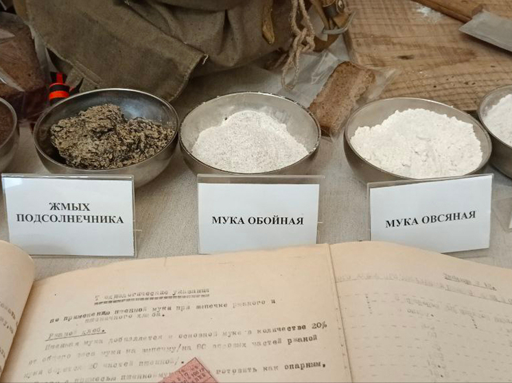 Чтобы участники мероприятия сразу окунулись в атмосферу военного времени, еще на входе их ждал стол с фронтовым и блокадным хлебом, испеченным по сохранившимся рецептам на закваске и заварке из овсяной и обойной ржаной муки с добавлением жмыха подсолнечника. Откусывая кусочки черного блокадного, с виду напоминающего наш, бородинский, многие отмечали, что он довольно вкусный и питательный. «Он был не хуже фронтового, который выпекали для бойцов, — поясняет сотрудница НИИ хлебопекарной промышленности, — правда, рецептура могла меняться, в зависимости от остававшегося сырья». Был период, когда для всех установили норму хлеба в 125 граммов. Его выкупали по карточкам, но не выше установленной нормы.