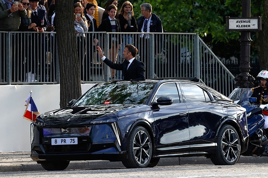 В конце прошлого года премиальный бренд DS представил новую флагманскую модель N°8 — это среднеразмерный электрический кросс-лифтбек (габаритная длина — 4834 мм, колёсная база — 2905 мм) на платформе STLA Medium, его продажи в Европе стартуют только осенью этого года, а вот Эмманюэль Макрон уже катается. Прежде французские президенты на электромобилях не ездили.