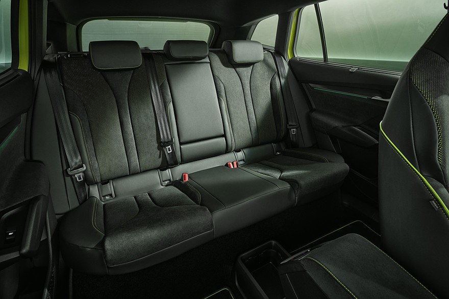 Интерьер рестайлинговых Enyaq RS и Enyaq Coupe RS может иметь два варианта оформления – Lounge и Suite (предполагает комбинированную отделку из кожи и искусственной кожи с серой прострочкой, а также декоративные элементы «под углеволокно»). В первом ряду установлены спортивные кресла. На передней панели, как и у стандартных Enyaq, размещены пятидюймовая виртуальная приборка и центральный тачскрин информационно-развлекательной системы диагональю 13-дюймов.