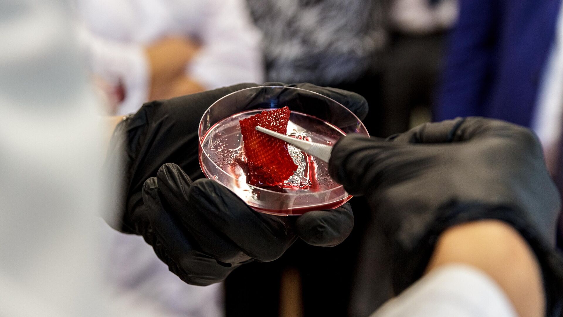 «Для печати искусственного мяса у животного-донора с помощью биопсии берутся клетки, которые размножаются в комфортных для них условиях (создается клеточная культура). Из этого материала возможно напечатать объемный продукт, который по вкусу будет очень похож на мясо, рассказали в вузе. Одно животное-донор может быть источником большего количества еды, чем при прямом “традиционном” получении мяса из тушки», ― подчеркнула заведующая кафедрой «Биоинженерия» факультета «Биоинженерия и ветеринарная медицина» ДГТУ Евгения Кириченко.