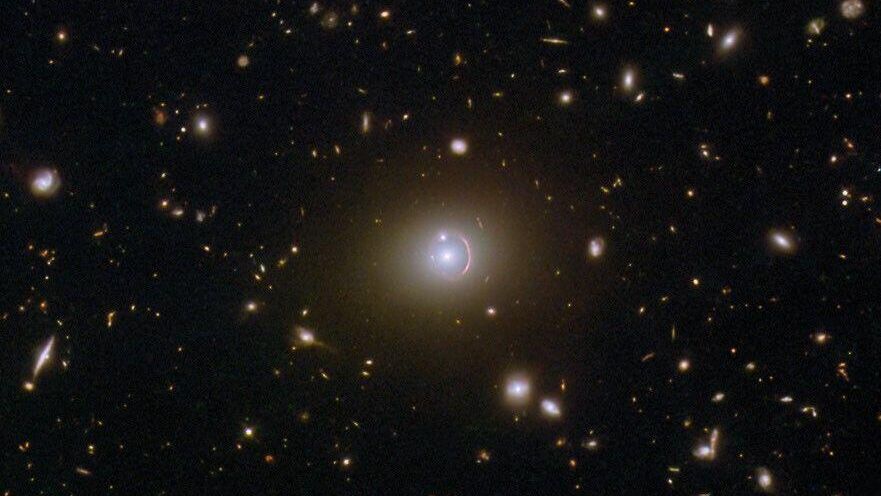 «Упорядоченность этого трио галактик создает своего рода гравитационную линзу, называемую кольцом Эйнштейна», — говорится в публикации на официальном портале НАСА.