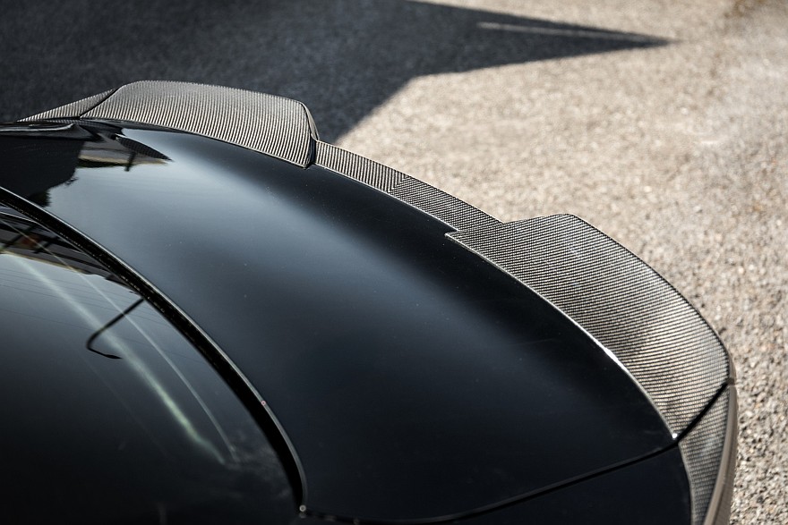 Внешний карбоновый обвес у Manhart MH4 900, по сути, такой же, как у представленного в 2022 году 702-сильного купе Manhart MH4 GTR II, а декоративные полоски в данном случае выполнены в цвете шампанского. Увеличенные выхлопные патрубки, встроенные в расширенный задний диффузор, могут быть изготовлены из углепластика либо керамики.