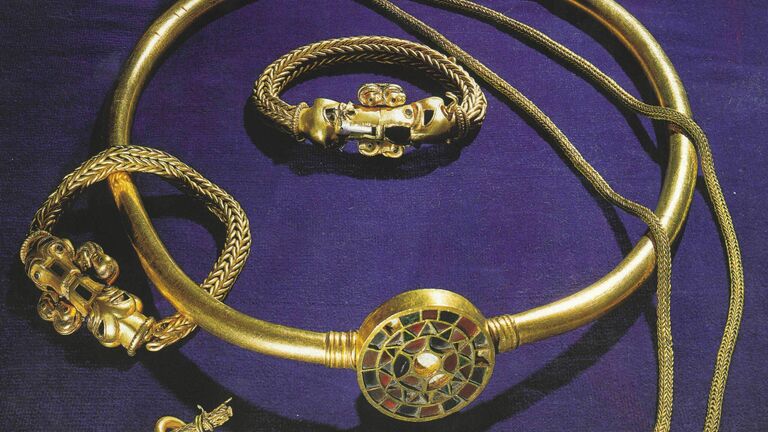 Но так называемый клинок с вырезами — ритуальное оружие, сделанное из длинного меча из дамаскированной стали, и характерные признаки всадника, прослеженные антропологами, указали, что похороненный на могильнике Дальний вождь, скорее всего, имел связь с кочевой культурой.