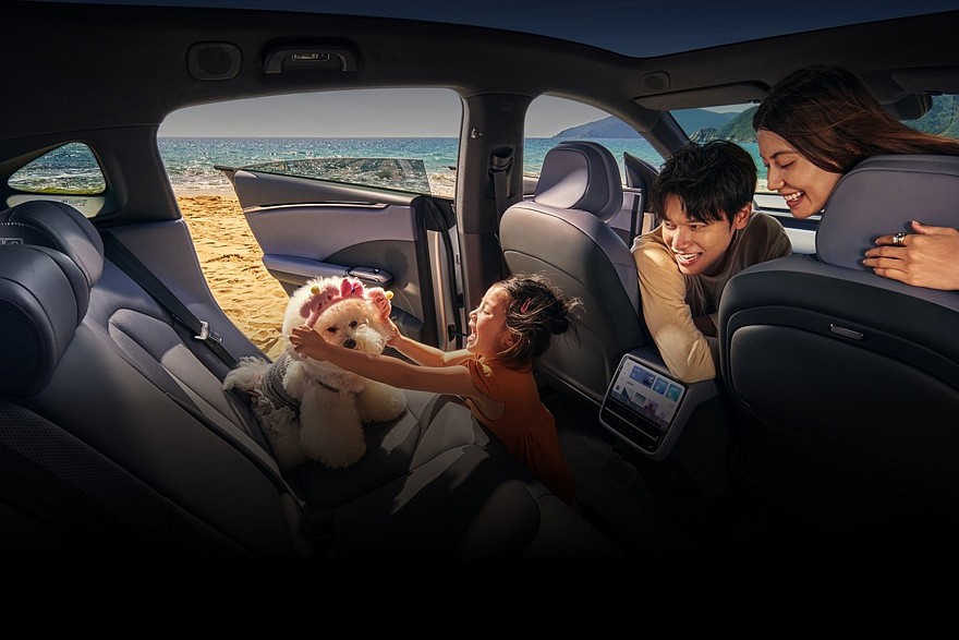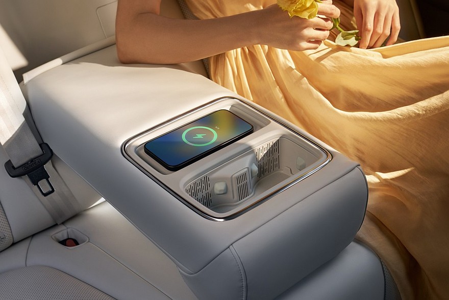 В отделке интерьера использованы кожа Nappa и натуральное дерево. На центральном тоннеле расположены две площадки для беспроводной зарядки смартфонов, еще одна площадка встроена в откидной подлокотник заднего дивана. Кроме того, у задних седоков есть собственный 8-дюймовый экран мультимедиа – он интегрирован в торцевую часть тоннеля. Для модели также заявлены аудиосистема с 20 динамиками, цифровое зеркало заднего вида, подогрев, вентиляция и массажер кресел. Ну и разумеется, в арсенале Xpeng G7 значится продвинутый автопилот (кроссовер имеет 11 камер и три радара миллиметрового диапазона).