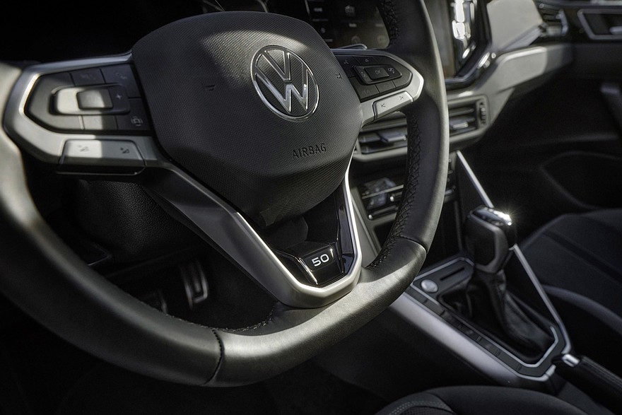 «Юбилейность» версии заметна в том числе в салоне: на порогах в проёмах передних дверей, а также на глянцевой чёрной поверхности передней панели со стороны пассажира у модели есть надпись «Edition 50». Ещё числовой индекс размещён на нижней части трёхспицевого рулевого колеса «праздничного» Volkswagen Polo.