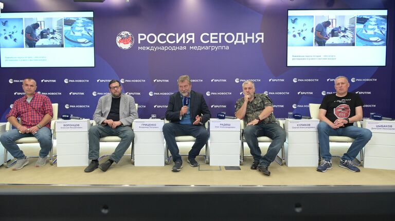 На пресс-конференции реставратор продемонстрировал последние необычные отреставрированные артефакты, среди которых кресало для добычи огня, навершие меча и обух топора, схожего с первым реконструированным артефактом Судбищенской битвы.