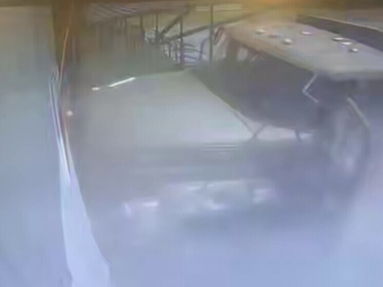 Опубликована видеозапись, показывающая, как грузовик подпригивает, а затем врезается. Водитель выпал из кабины и убежал.
