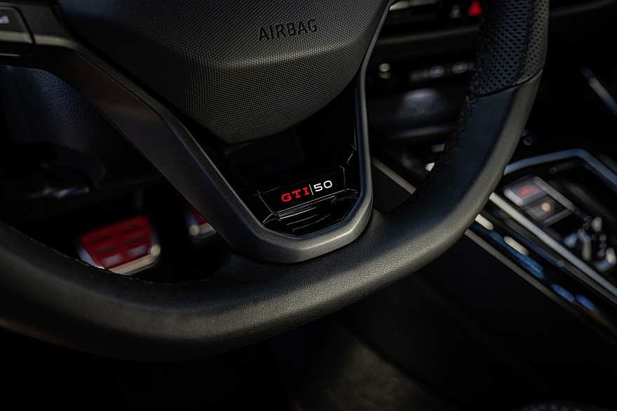 У хот-хэтча Volkswagen Golf GTI 50 передняя подвеска типа MacPherson, сзади – «четырёхрычажка». Этот вариант на 15 мм ниже базовой версии. А с опциональным пакетом GTI-Performance подвеску можно занизить ещё на 5 мм (в итоге разница составит 20 мм). Такой автомобиль снабдили более жёсткими пружинами и перенастроенными адаптивными амортизаторами. Ещё пакет включает в себя титановую выпускную систему Akrapovič (на 11 кг легче, чем стандартная), кованые 19-дюймовые диски Warmenau (каждый на 3 кг легче), обутые в полуслики Bridgestone Potenza Race (каждая шина на 1,1 кг легче).