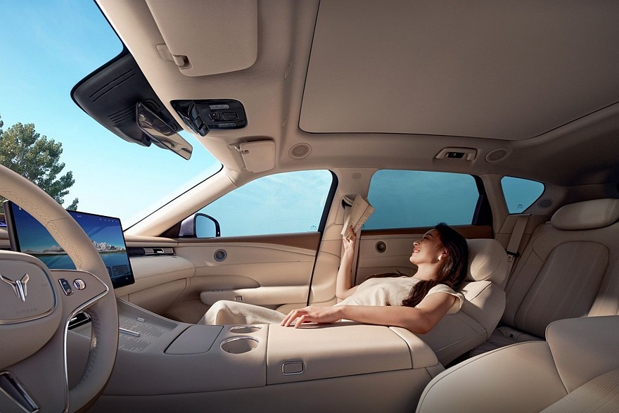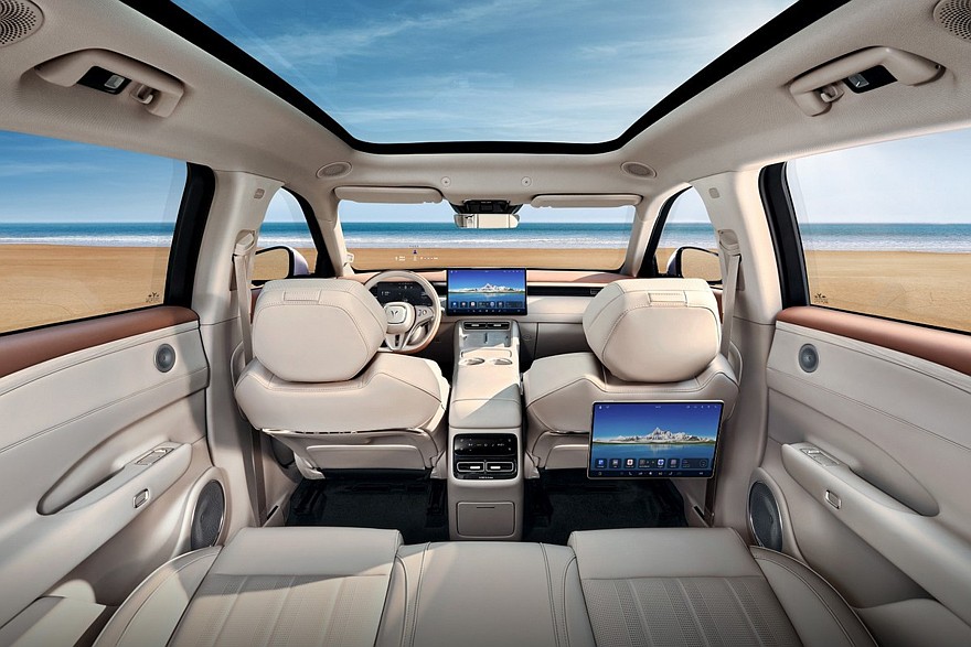 В списке оборудования Voyah Free+ также заявлены панорамная крыша, проекционный дисплей, две беспроводные зарядки и трехзонный климат-контроль. Наконец, есть аудиосистема Voyah Sound с 22 динамиками, четыре из которых встроены в подголовники передних сидений, а один расположен поверх передней панели и имеет выдвижной механизм и собственную подсветку.