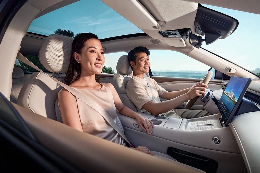 Салон полностью перекроили. Вместо подъемной передней панели с тремя экранами Voyah Free+ имеет раздельные дисплеи приборки и мультимедиа (центральный планшет – диагональю 15,6 дюйма). Электроника работает на операционной системе Harmony Space 5 той же фирмы Huawei. Еще заменили руль и карты дверей. Бокс-подлокотник теперь с единой крышкой, которая при этом открывается с двух сторон. Внутри – 7-литровый отсек с функциями охлаждения и подогрева. Переднее пассажирское сиденье может иметь подставку для ног, а у спинок задних кресел есть регулировка наклона. Сиденья – с вентиляцией, подогревом и массажером.