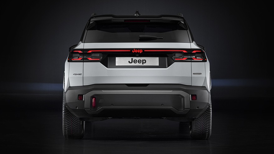 На капоте имеется матово-чёрная наклейка с антибликовым покрытием, профиль отличается за счёт комплекта 19-дюймовых колёсных дисков, которые обуты в высокопрофильные шины. Нижняя часть заднего бампера тоже оформлена иначе, помимо этого, корму Jeep Compass 4xe украсили красной буксировочной проушиной.