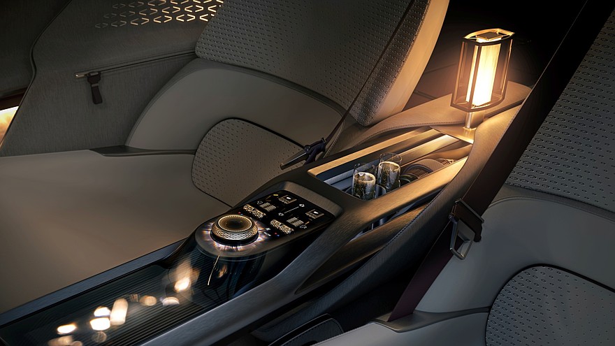 Место водителя Bentley EXP 15 выглядит куда менее футурсистично, чем у концепта Bentley EXP 100 GT шестилетней давности, и это, пожалуй, хорошо. Робин Пейдж и его команда попытались выстроить идеальный баланс между неизбежной в наше время цифровизацией и столь ценимыми в лакшери-сегменте физическими приборами и выключателями, напоминающими изысканные ювелирные изделия. В отделке используются натуральная шерсть, дерево и полированный металл. Графика экранов гармонирует со струящимся через перфорированные панели дверей мягким светом атмосферной подсветки.