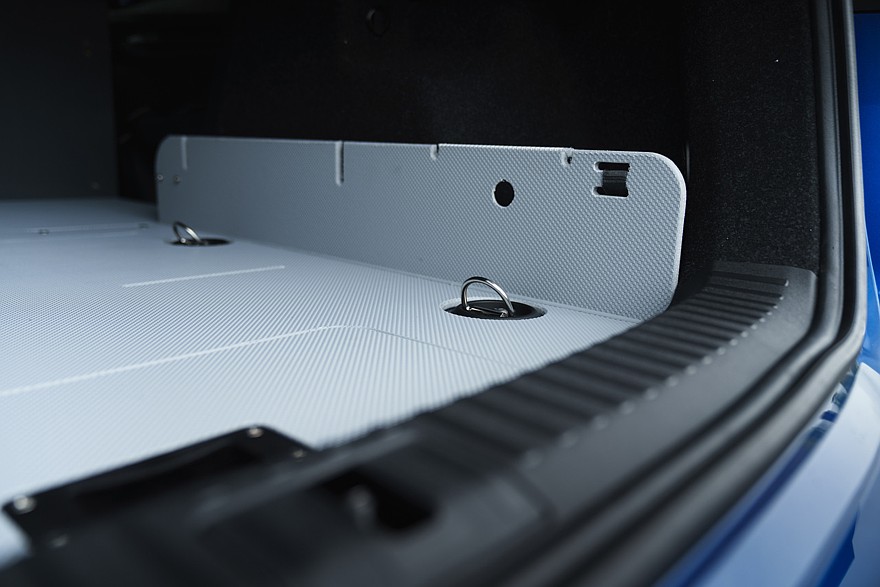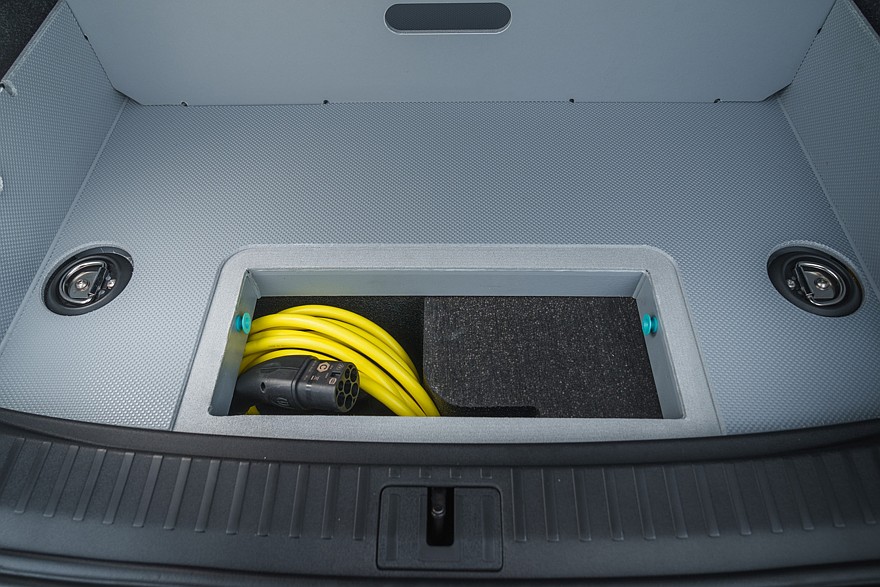 При этом доступ к «подросшему» багажнику есть не только через пятую дверь, но и через обе боковые задние. Задние стёкла коммерческого электромобиля разработчики версии решили наглухо тонировать, чтобы скрыть от посторонних глаз то, что находится в грузовом отсеке. Стекло в пятой двери защищено с помощью дополнительной сетки, расположенной с внутренней стороны.