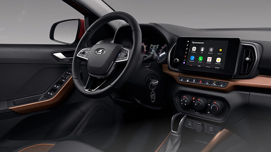 Следующей версии, Life, положены кондиционер, подогрев передних сидений и обогрев наружных зеркал. Далее следует исполнение Enjoy с обогревом форсунок омывателя, круиз-контролем, охлаждаемым вещевым ящиком, регулировкой рулевой колонки по вылету и информационно-развлекательной системой Lada Enjoy Evo, которая включает в себя онлайн-сервисы Яндекса и доступ в интернет.