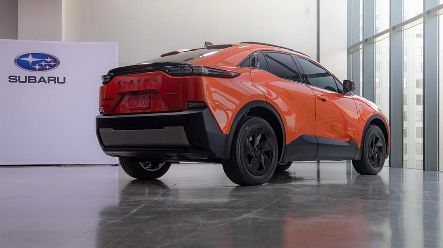 Салон рассчитан на пятерых седоков, он многое позаимствовал у ближайшего родственника – электрического паркетника Toyota C-HR. Правда, у разработчиков оригинала получилось сделать рулевое колесо круглым, а в Subaru его решили «сплюснуть» с двух сторон. За ним располагается торчащий дисплей виртуальной приборки, а по центру передней панели установлен 14-дюймовый тачскрин информационно-развлекательной системы. Предусмотрены два беспроводных зарядных устройства для смартфонов.