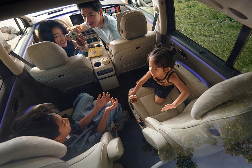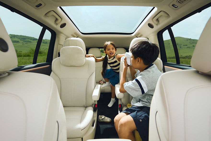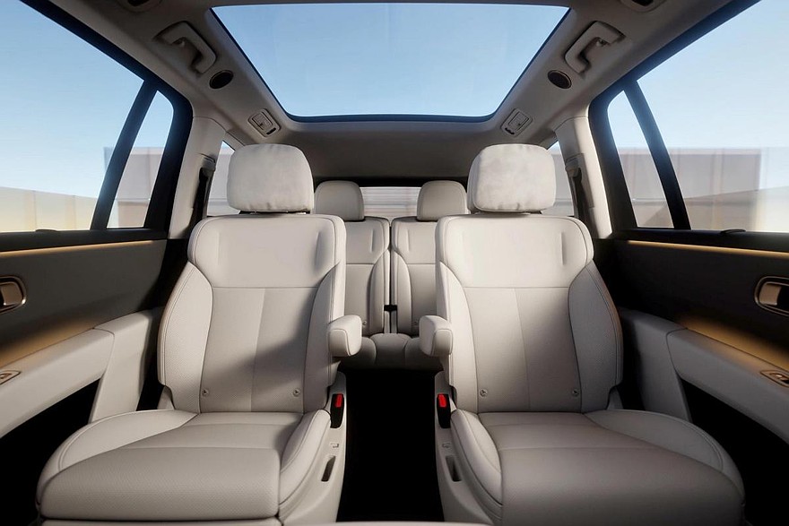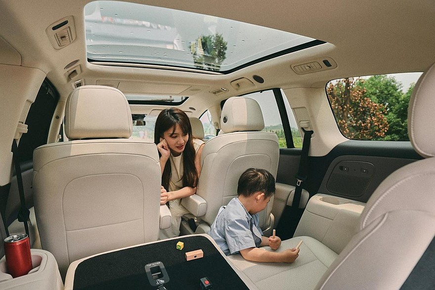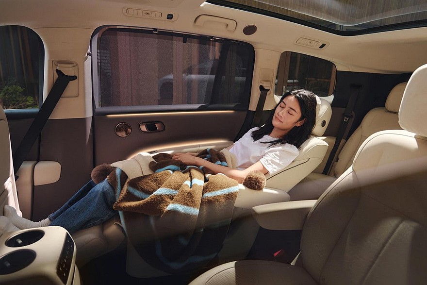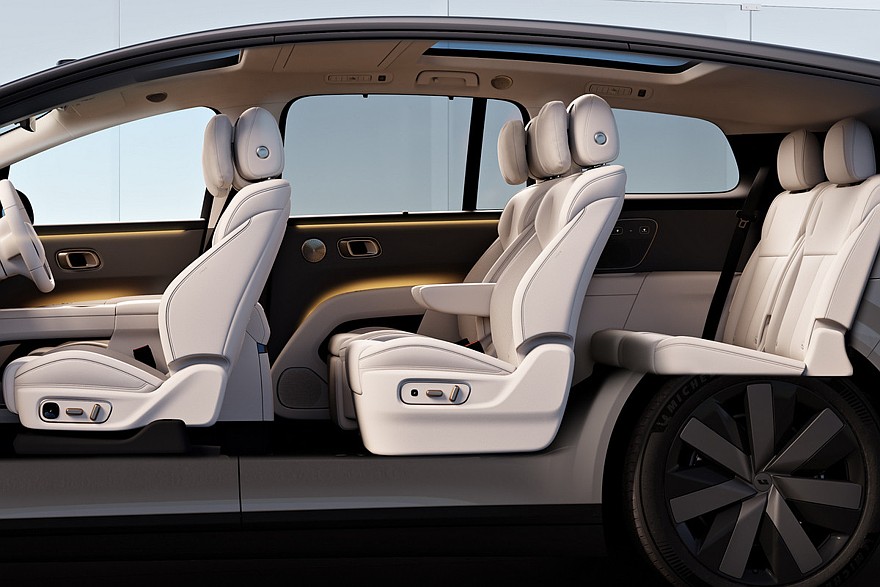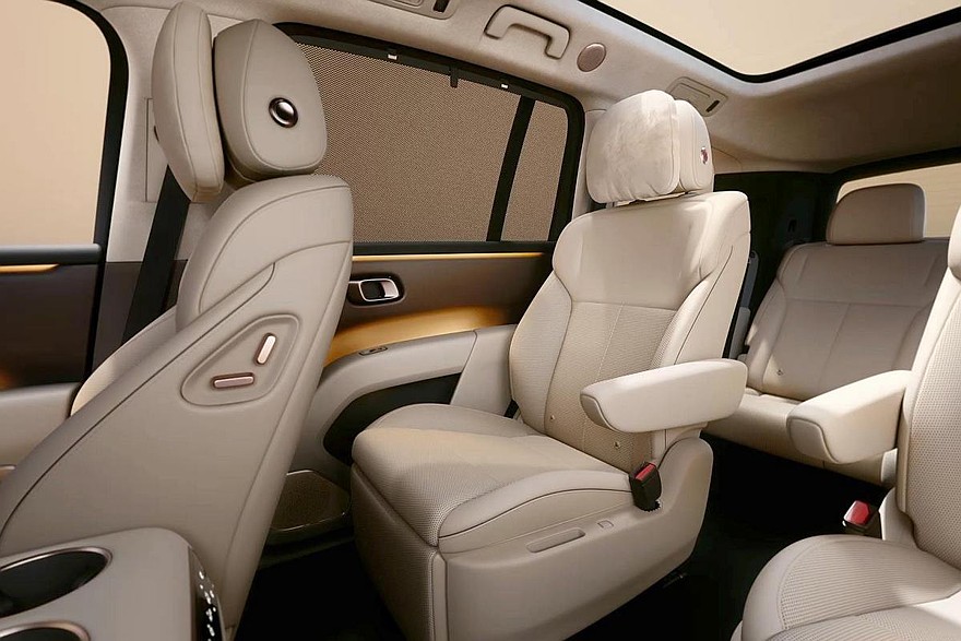 В арсенале базового кроссовера значатся: упомянутые выше дисплеи и беспроводная зарядка, две стеклянные секции в крыше, обивка Nappa, трехзонный климат-контроль, подогрев руля и всех сидений, вентиляция и массажер кресел первого и второго рядов (кресла второго ряда вдобавок имеют откидные подставки для ног – тоже с подогревом). Кроме того, уже в базе есть продвинутый автопилот MindVLA – он включает лидар, несколько камер, радар миллиметрового диапазона и 12 ультразвуковых радаров.