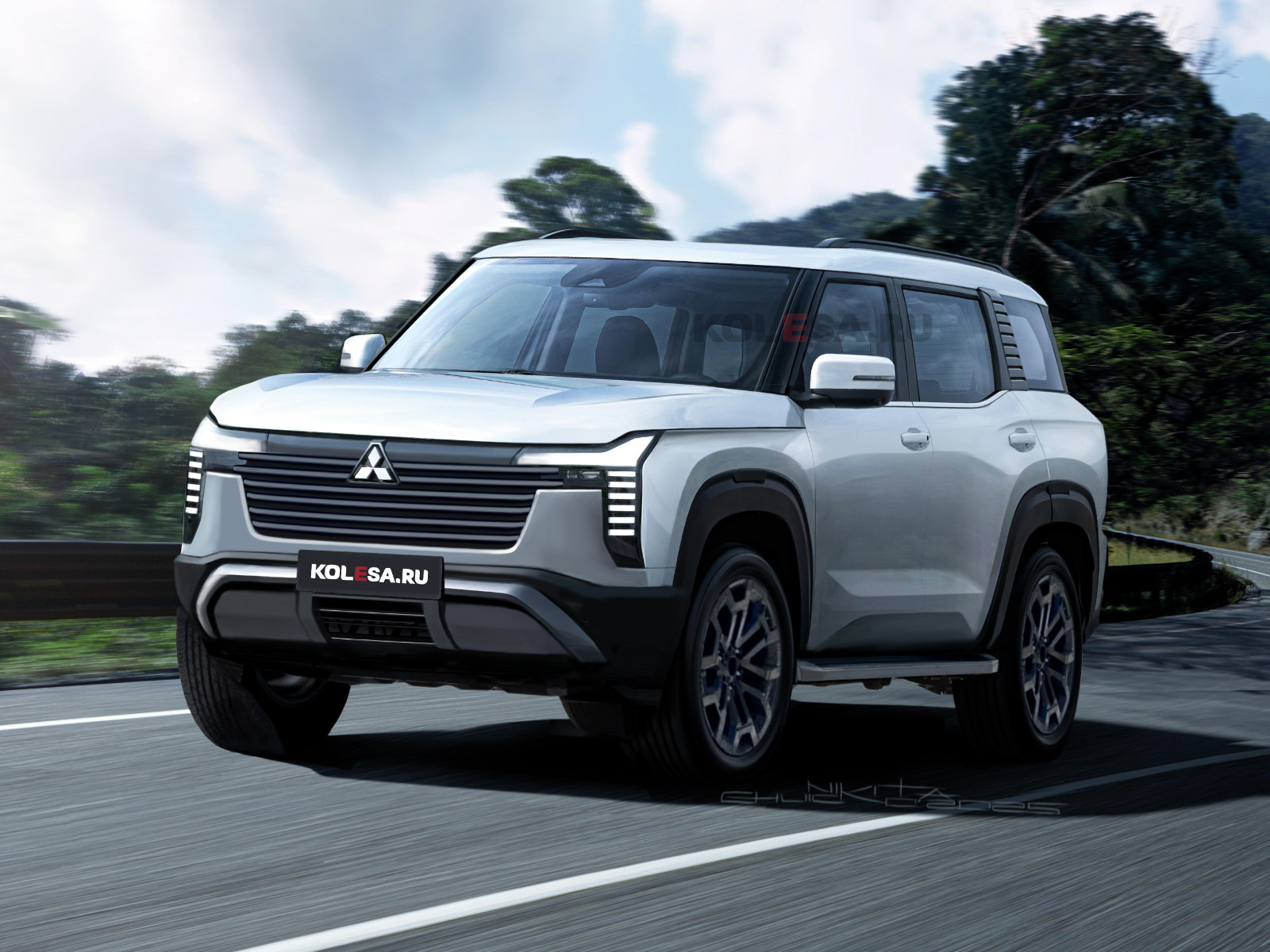Пока нет подтверждённой информации, какое имя получит замеченный во время испытаний новый внедорожник Mitsubishi, среди возможных вариантов — Pajero Sport и просто Pajero (его рендеры мы сделали совсем недавно). Очевидно, что дизайн выполнен в новом стиле бренда, который ранее уже был применён на кроссовере Destinator. При этом новинка явно крупнее по размерам, а на «внедорожность» и рамную конструкцию намекают 6-болтовые крепления колёс, в то время как у более лёгких кроссоверов крепления на пяти болтах. Спереди у новинки схожие с Destinator ходовые огни в виде горизонтальных полосок в верхней части и выстроенных вертикально штрихов чуть ниже, которые также выполняют роль поворотников. При этом блоки основного света у внедорожника расположены горизонтально, в то время как у Destinator блоки вертикальные. Наиболее заметным отличием спереди является решётка радиатора, которая сделана гораздо более простой: у неё трапециевидная форма и несколько горизонтальных перекладин. Боковины схожи, разве что у нового внедорожника не будет столь глубоких выштамповок над арками, и будут иначе оформлены нижние части дверей. Ещё один характерный элемент большинства рамных внедорожников — стационарные подножки. Задняя часть также заметно отличается от Destinator: здесь схожие блоки фонарей, однако они будут визуально объединены (вероятно, со светодиодной полосой), а под этой объединяющей плашкой расположится ниша номерного знака.