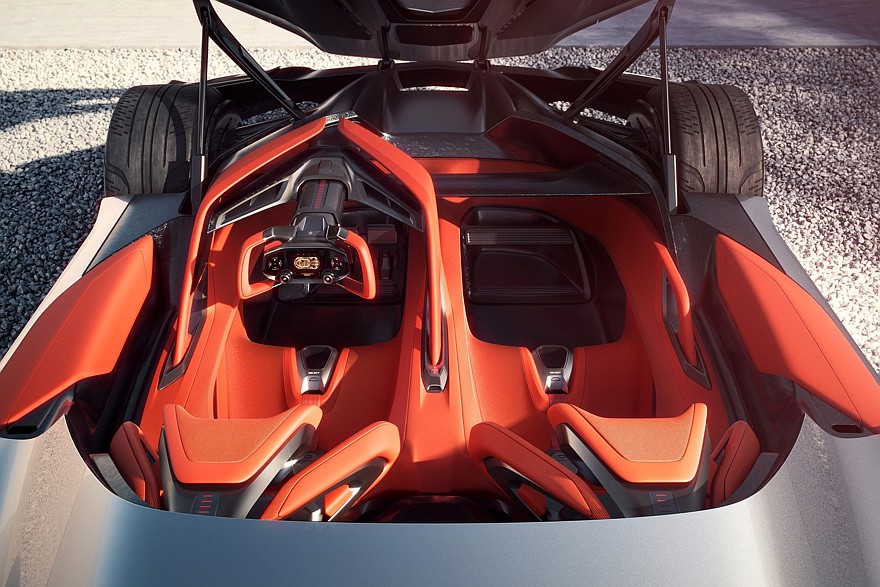 Corvette CX.R Vision Gran Turismo устроен ещё интереснее: у него гибридная силовая установка, сердцем которой является установленный в районе задней оси 2,0-литровый бензиновый битурбомотор V8, он выдаёт порядка 900 л.с. и способен крутиться до 15 000 об/мин! Этот двигатель состыкован с 8-ступенчатым «роботом» с двумя сцеплениями, в который интегрирован один из трёх электромоторов. Два других электромотора расположены на передней оси и вращают передние колёса. Максимальная совокупная отдача гибридной силовой установки превышает 2000 л.с.