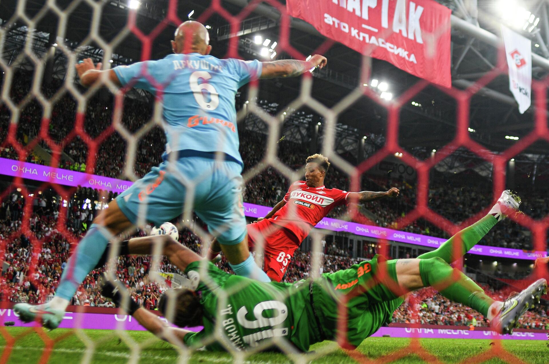 «Зенит» изо всех сил боролся с натиском «Спартака», желавшего реализовать численное преимущество и все же добиться победы на своем поле, но на последних минутах при счете 2:2 привез пенальти в свои ворота: Густаво Мантуан неаккуратно сыграл в штрафной площади и ударил по ноге Наилю Умярову, главный арбитр встречи Артем Чистяков после совещания с видеоассистентами подтвердил собственное же решение указать «на точку». И «Спартак», казалось, добился желаемого и вогнал мяч в сетку ворот принципиального соперника. Пенальти исполнил Эсекьель Барко. Аргентинский полузащитник «красно-белых» пробил по центру, но голкипер «Зенита» Денис Адамов ногами отразил его удар, с добиванием от Барко вратарь петербуржцев также справился, а вот новичку спартаковцев Жедсону Фернандешу уже никто не смог помешать все-таки расстрелять ворота.