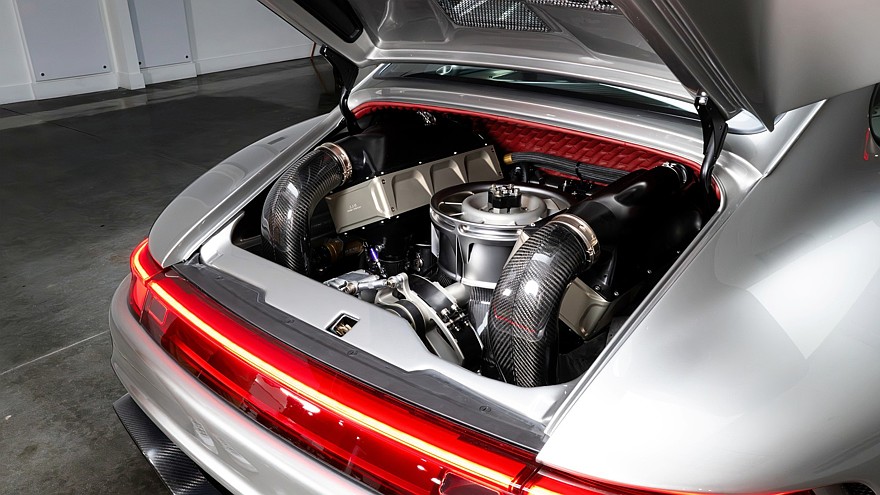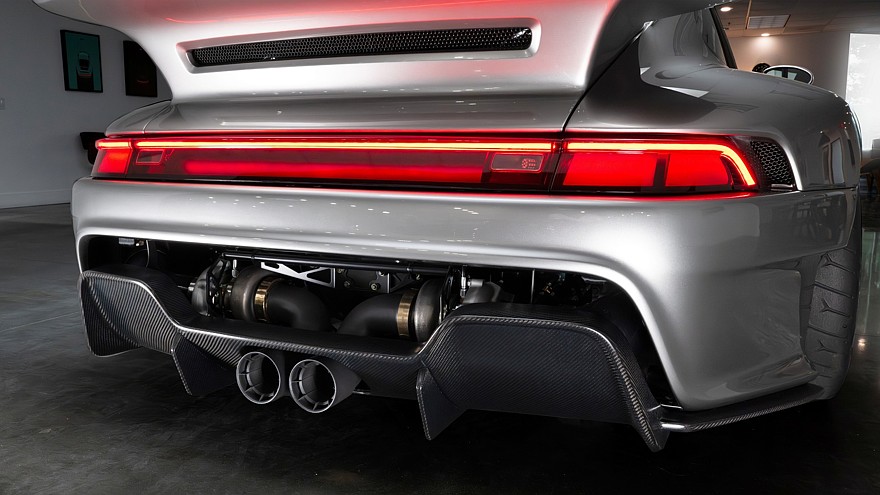 4,0-литровый оппозитный битурбомотор с горизонтальным гоночным вентилятором охлаждения для Gunther Werks F-26 поставляет фирма Rothsport Racing из штата Орегон. Этот двигатель получил новую систему впуска из углепластика, более эффективный интеркулер и новую программу управления, благодаря чему максимальная отдача выросла до феноменальных для «воздушника» 1014 л.с. при 7600 об/мин и 1017 Нм при 5600 об/мин, но это при питании смесью этанола с бензином, на чистом бензине отдача будет пониже. Вся мощность передаётся на задние колёса через 6-ступенчатую МКП и самоблокирующийся дифференциал. Динамические характеристики не опубликованы, но они, полагаем, впечатляющие с учётом того, что в снаряженном состоянии весит суперкар всего 1247 кг.