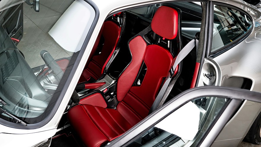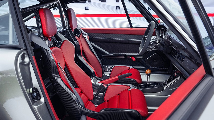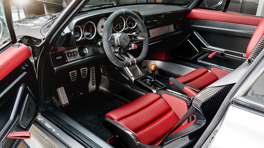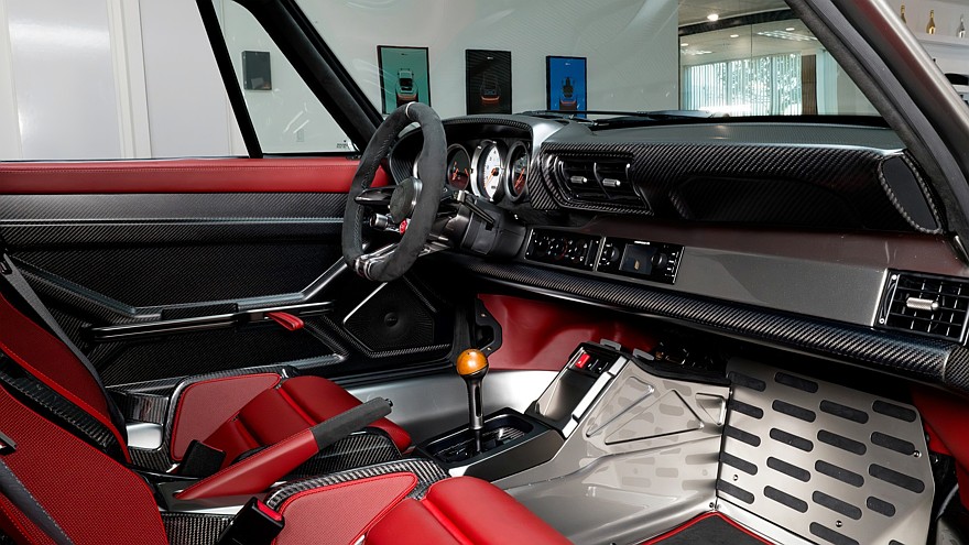 Салон Gunther Werks F-26 оформлен в стиле классических Porsche 911, но при этом большинство деталей для снижения веса выполнены из углепластика, а шумоизоляция сведена к минимуму — пол щеголяет голым металлом. За лёгкими ковшами из углепластика установлен полукаркас безопасности. Рычаг МКП с открытой кулисой украшен деревянным набалдашником. За развлечения отвечает компактное мультимедийное головное устройство Porsche Classic с поддержкой Apple CarPlay.