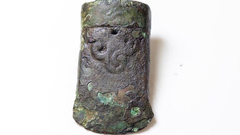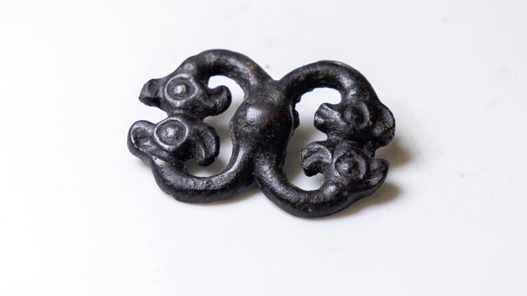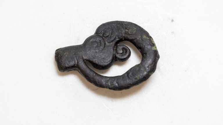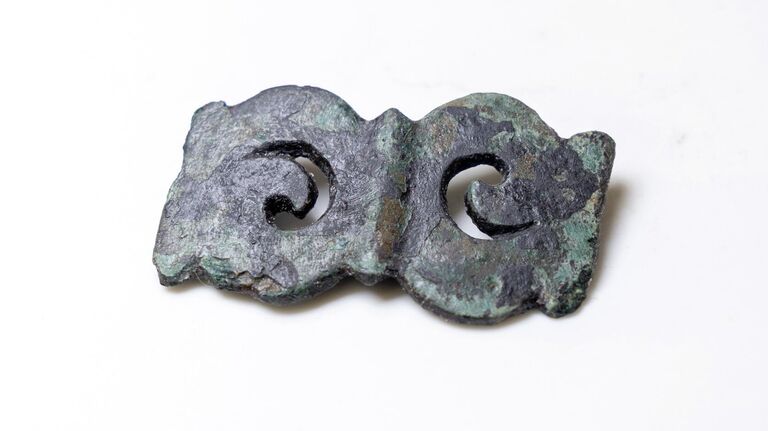 «Небольшие бляшки в форме сдвоенных голов хищных птиц, повернутых друг к другу, выполнены с элементами скифо-сибирского звериного стиля. Этот стиль характерен для культур Верхнего Приобья (VI–V вв. до н. э.). Скорее всего, этот воин пришел с юго-запада, а не из Тывы и Минусинских котловин. И двигался он в обход современной красноярской лесостепи. Вместе с останками мы нашли детали, которыми декорировалась конская упряжь», — подчеркнул Мандрыка.