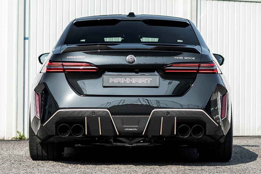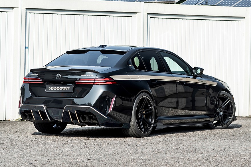 Если Mansory сделала новый BMW M5 ещё уродливее, то обвес от Manhart слегка скрашивает визуальную тяжеловесность стокового седана. В комплект входят новый передний спойлер, боковые канарды, накладки на пороги, «шапочки» для зеркал, спойлер над задним стеклом, более развитый спойлер на крышке багажника и более развитый диффузор в заднем бампере. Светлые декоративные полоски на чёрном кузове визуально задают новую геометрию поверхностей и делают бамперы как бы более воздушными.