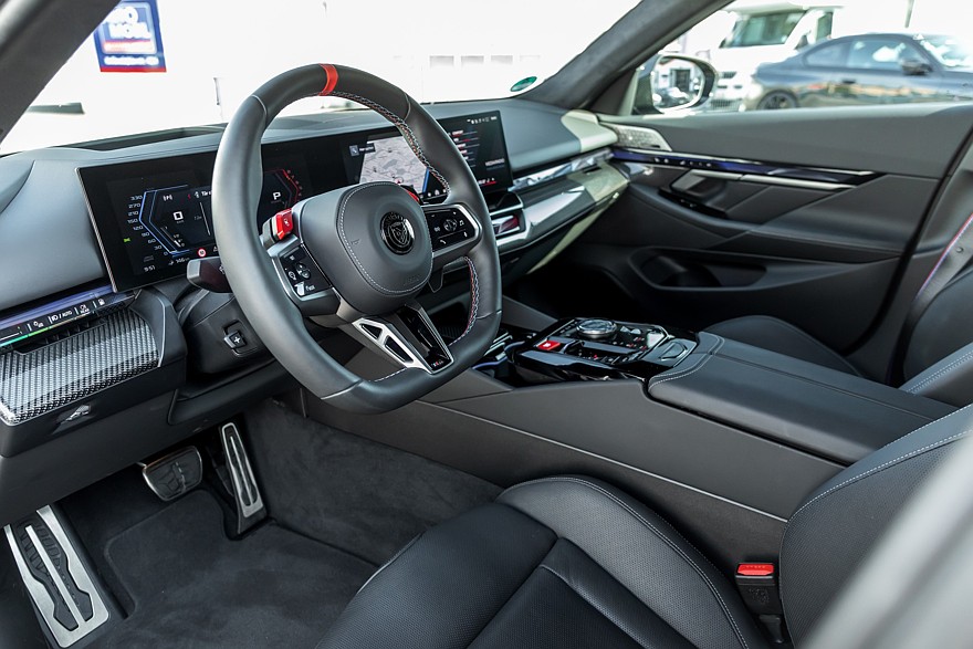 Ажурные кованые колёса Manhart Concave One больше стоковых на дюйм и тоже визуально облегчают образ баварского седана. Manhart вдобавок предлагает на выбор два варианта занижения подвески — с компонентами H&R либо KW Suspensions. Стоковые карбон-керамические тормоза у BMW M5 и так достаточно мощные, но по желанию заказчика Manhart может установить ещё более крупные диски с многопоршневыми суппортами.