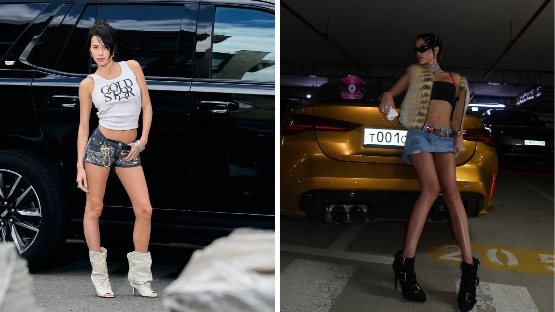 Личный бренд нынешней Загитовой — отчасти такой же декоративный, как стиль гламура, в который было предложено поиграть гостям мероприятия The Voice. Эту джинсовую мини и меховую жилетку можно представить на условной Пэрис Хилтон или любой другой светской львице нулевых, но не на Загитовой, которой в 2007 было два года. Впрочем, таков дресс-код мероприятия, Алина в него просто вписалась — никаких претензий. Была бы темой вечеринки мода стиляг, она оделась бы как в шестидесятых.