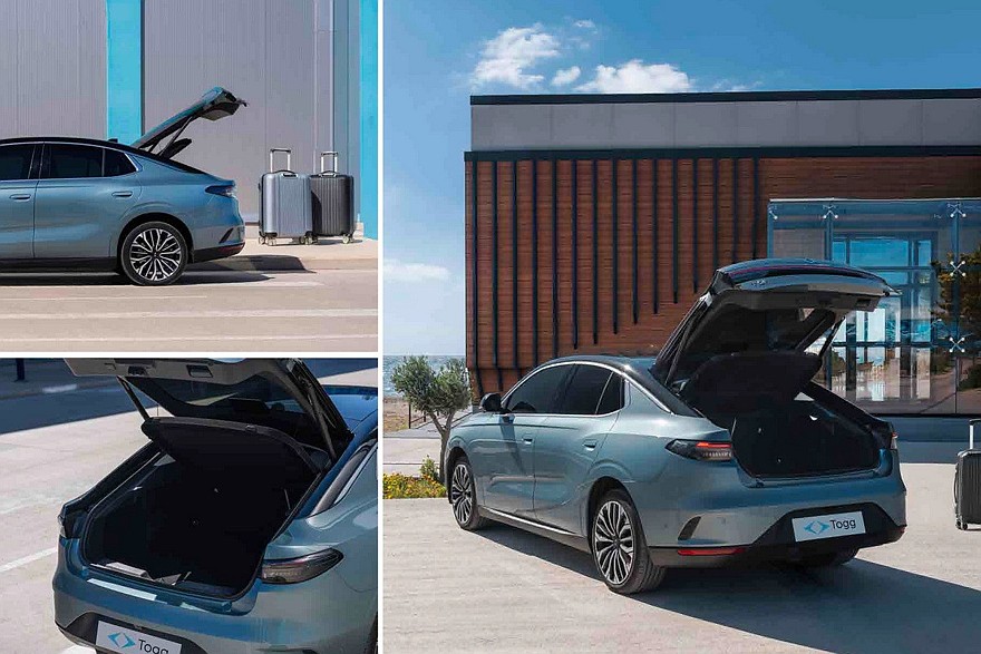 Длина лифтбека равна 4830 мм, ширина – 1881 мм, высота – 1551 мм. Колесная база – те же 2890 мм, что и у кроссовера Togg T10X. Лифтбек может иметь 17-, 18- или 19-дюймовые колеса. Объем багажника – 505 литров, со сложенными спинками второго ряда кресел этот показатель увеличится до 1350 литров.