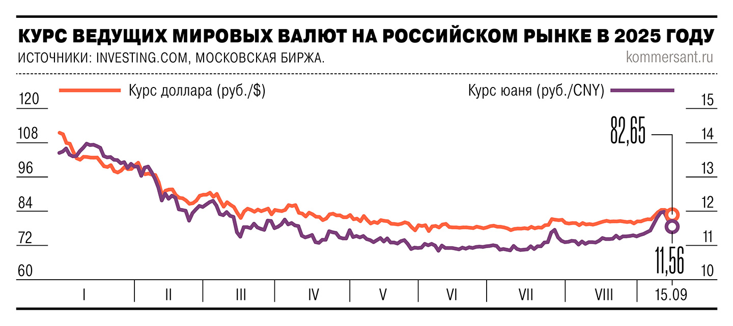 < Span Class = "Vicon Vicon-Close" > < img class = "doc_media__media_free js-lazyimage-source js-lazyimage-trigger" src = "data: image/base64, r0lgodlheaaaaaao7u7gaaacwaaaaaaaaaaaccospqcvtd6oclbuaow ==" < img class = "doc_media__media sharkback_image" src = "https://iy.kommersant.ru/issues.photo/daily/2025/169/_2025d169-08-01.jpg" alt = "" > < p class = "doc__text" >15 сентября курс Юаня на Московской бирже упал до 11,52 рублей/CNY, что составляет 23 Kopecks. (2%) ниже заключительных значений пятницы. Согласно результатам торговли, курс остановился возле отметки 11,55 рублей./$. Через два дня китайская валюта упала почти на 40 копеков. (3,3%), падение B < B > < I > O Большая часть роста, который произошел на прошлой неделе. Обмен долларовый курс на более высоком рынке начался неделю с падения на 2%, до 82,25 рублей. В течение двух торговых дней американская валюта упала на 2,2%.