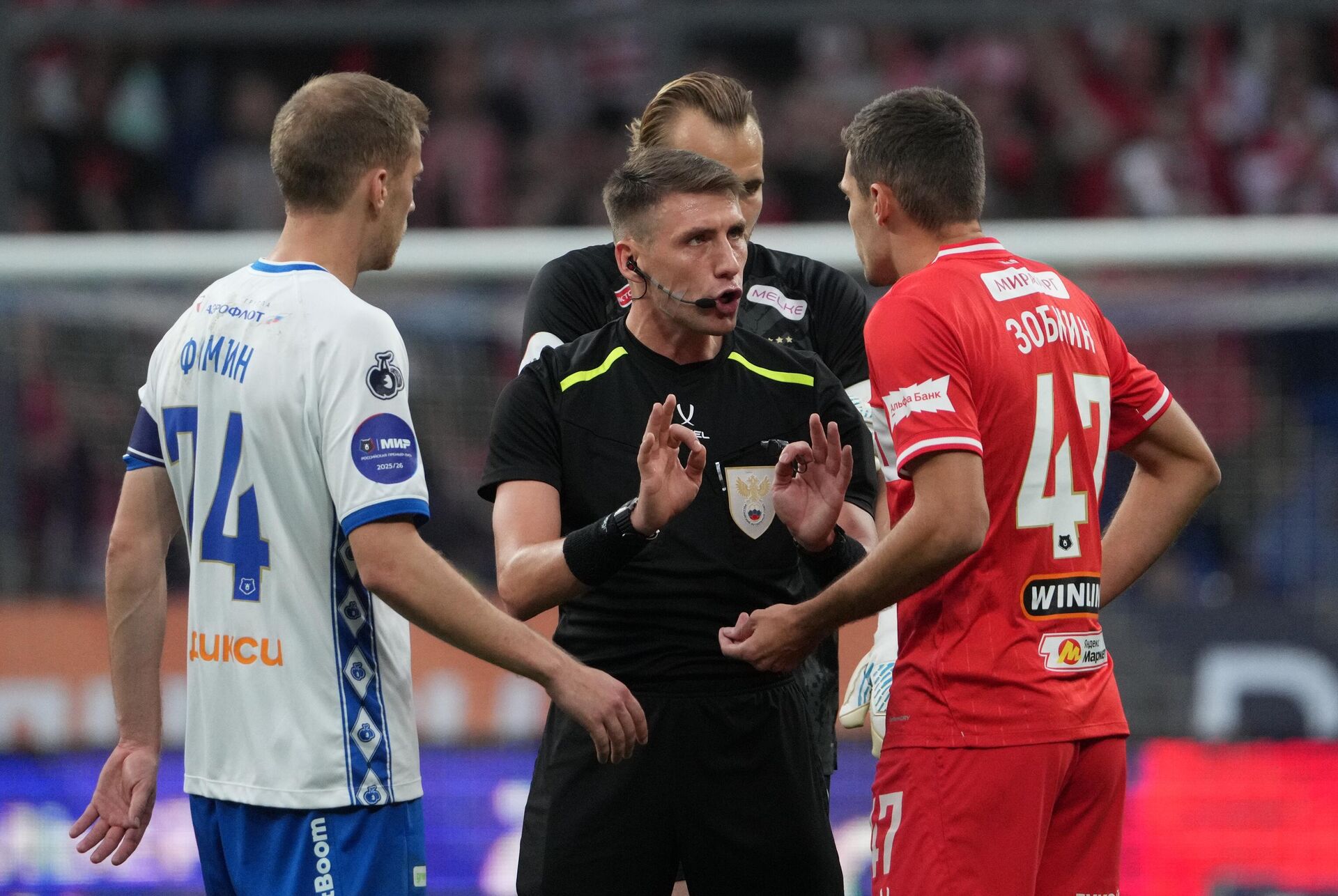 Но хозяева не просто отыгрались до перерыва. Они вышли вперед! Жуан Бителло подал со штрафного на 26-й минуте, мяча никто не коснулся, а Александр Максименко не среагировал — 1:1. Перед перерывом бразилец оформил дубль, красивым ударом уложив мяч в дальний угол. Тут на поле полетели искры! Но не от игроков, а от тренера «Спартака» Деяна Станковича, которого взбесило, что Егор Егоров засчитал взятие ворот гостей. Серб был уверен, что перед атакой футболист «Динамо» фолил на Маркиньосе, — судья же решил, что специалист совсем не следит за эмоциями, и вытащил красную карточку.