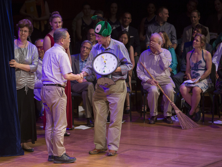 Последние победители были награждены настоящими нобелевскими лауреатами и осыпаны бумажными самолетиками на церемонии в Бостонском университете в четверг.