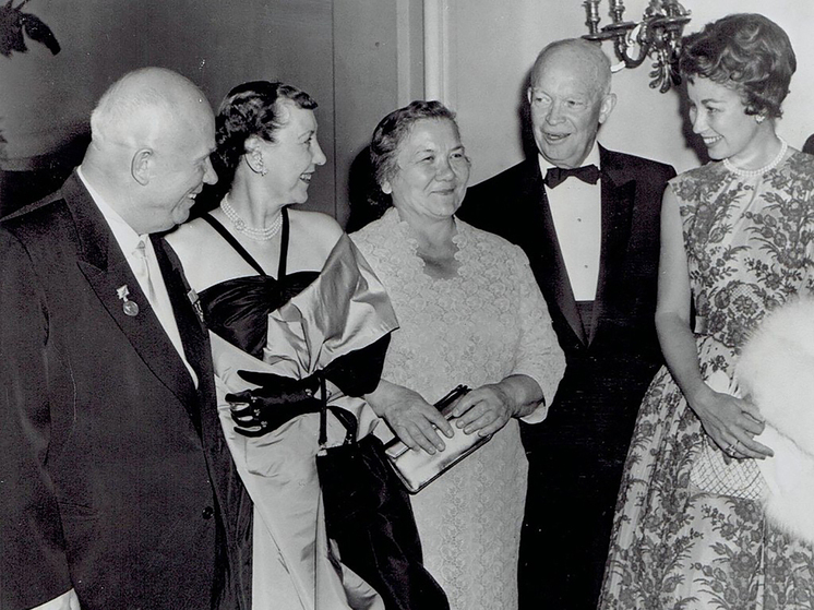 70 лет назад вышел указ об амнистии советских граждан, сотрудничавших с оккупантами Никита Хрущев и Нина Кухарчук-Хрущева (в центре) во время визита в Америку. Второй справа — 34-й президент США Дуайт Эйзенхауэр (справа от Хрущева — его жена Мейми). Вашингтон, 17 сентября 1959 года.