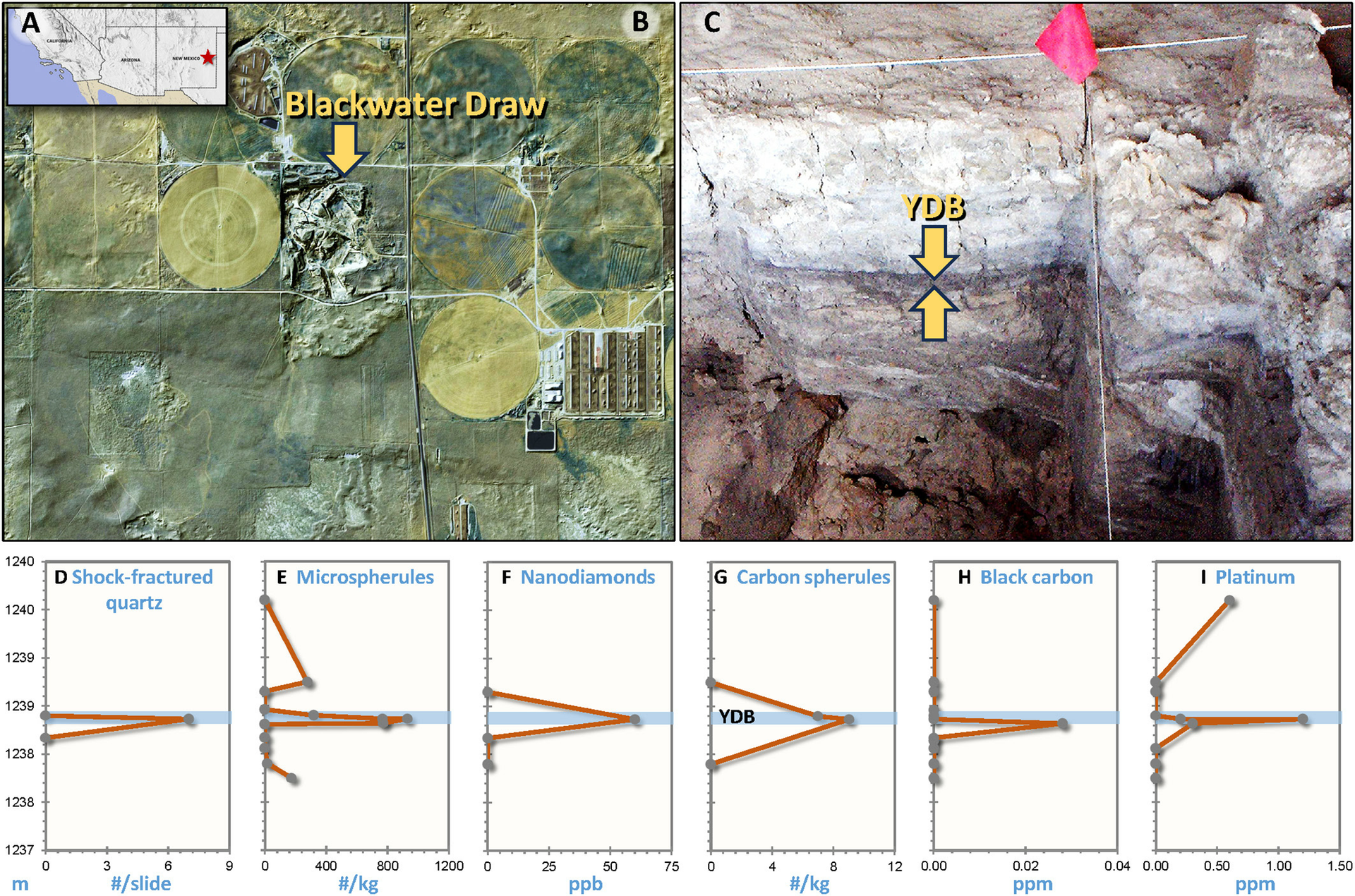 Кроме того, в слоях осадочных пород содержались иные следы внеземного происхождения — черный мат, наноалмазы и импактные сферулы. Это укрепило ученых в предположении, что именно космическое воздействие стало ключевым фактором, приведшим к исчезновению культуры Кловис.