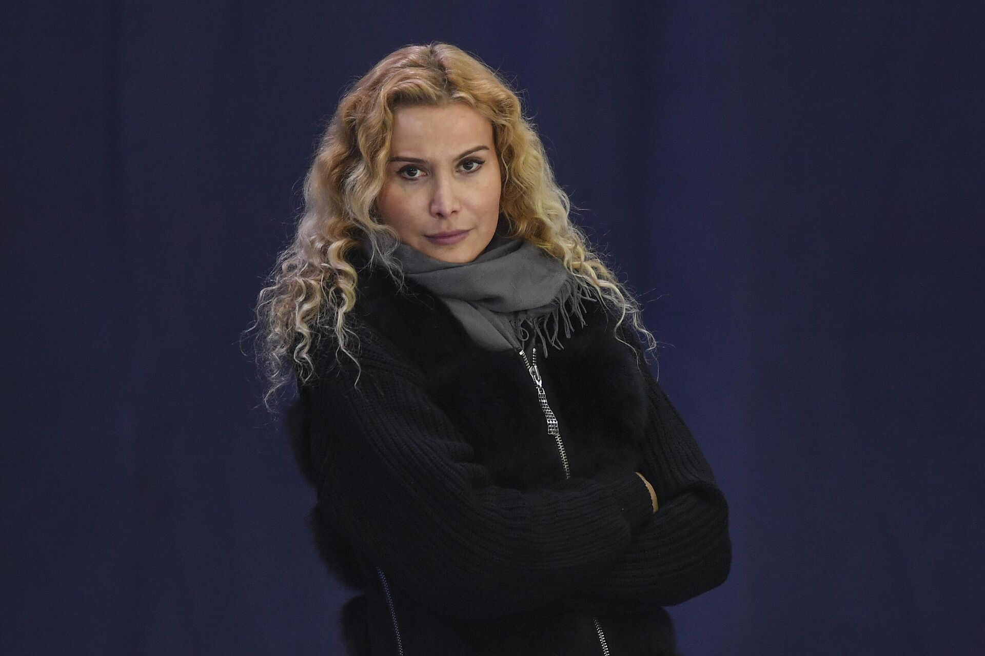 Баннер поддержки Петросян потребовали убратьЧемпионка выходит на лед под овации трибун, но без каких-либо опознавательных знаков. Вместо любимого тренера Этери Тутберидзе рядом — представитель нашей делегации Валерий Артюхов.