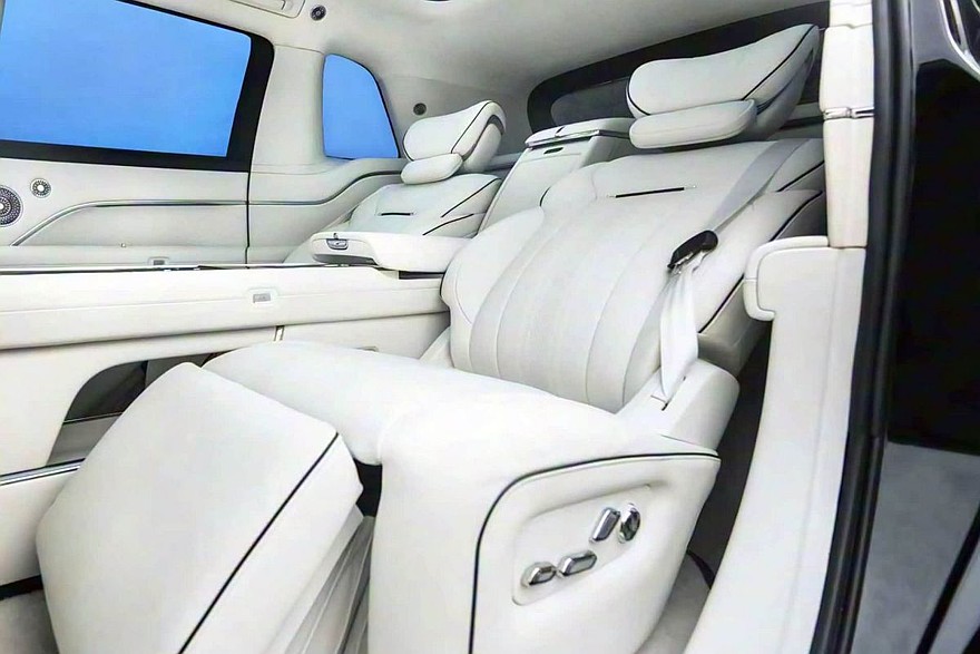 Кроссовер получил четырехместный салон. Переднюю часть еще не продемонстрировали. Сзади же – кресла со множеством электрорегулировок и откидными подставками для ног.